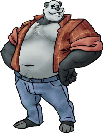 - Walking Shirtless Scene: Pan manages to accomplish this even when wearing his lumberjack uniform, always baring his bearish chest and bulbous gut. Shirts are entirely optional when not at work, and the game practically encourages players never to intentionally dress Pan from the waist up.