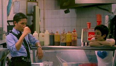 - Big Eater: The first cop eats his way through 30 cans of pineapple to get over his ex, and then several plates of miscellaneous food when Brigitte Lin is sleeping.