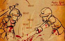 Often, the city guards (and the guards in general) will be better equipped in appearance than your hero, such as in games where there is no armour for you. Despite this, you're probably stronger than them (unless you aren't), and let them stand in your way only out of respect for the law or... something. Of course, that in itself can get stupid in its own ways, such as when you're in an enemy town. As for the ones in Good Guy towns... do they have no idea what urgent plot points they're keeping you from? Don't they know that the Evil Overlord is marching his forces upon their hapless town? No?! The Guards Must Be Crazy.