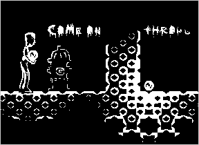But the thirty levels offer more than just interesting gameplay; the game is excellent proof that browser games can be seen as an art form. Dynamic music and a distinct graphical style help in creating an oppressive, dark mood. The story is told completely without dialogue: your only hints are the background drawings and writing on the walls – and even then, you're left completely in the dark until the very last level of the game.