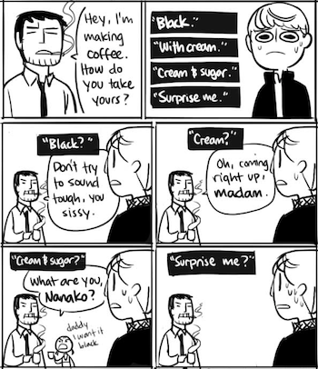 - And the "Lifestyle Disagreer". Though he's vulnerable to Reverse Psychology.