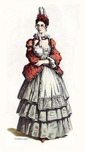 - Colombina (Pierrette): Distaff Counterpart of Arlecchino; servant of the innamorata. Forms a Beta Couple with Arlecchino. Often the smartest/sanest person in the play. (What, you thought Women Are Wiser was a recent invention?) Usually plays a musical instrument, sings, dances, or does all three. Wears lots of bright colours. Also can be known as Arlecchina.