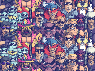 - ↑ From left to right, the sunglasses-wearers include Cobra, The Squirtle Squad, Randy Savage, T-101, Krookodile, Kamina, Lt. Horatio Caine, Nada, Duke Nukem, one of the California Raisins, Chester Cheetah, and K'.