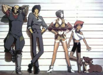 Originally broadcast from October 1998 to April 1999, Cowboy Bebop is the story of the five inhabitants of the spaceship Bebop and the living they (barely) make at bounty hunting. They are: hard-nosed ex-cop Jet Black, laid-back ex-hood and Jeet Kune Do master Spike Spiegel, gorgeous con-artist Faye Valentine, 13-year-old (mad) genius hacker girl Edward Wong Hau Pepelu Tivrusky IV (or simply Ed), and the genetically engineered "data dog" Ein. The Bebop's crew faces dangerous criminals, occasional starvation, a particularly disgusting refrigerator, and their own dark pasts over the course of the 26-episode series. Although the primary thrust is dramatic, there are moments of humor leavening the story which—despite its episodic nature—carries along a continuing plot and builds to an explosive climax. One of the defining thematic choices the show makes is that everything has a rich backstory, but almost nothing is explained in full; the stories are concerned with the problems in the present, so in many cases, only an implied history is given.
