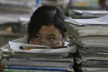 Strangely, even though All East Asian Mothers Are Education Mamas, there are no cram schools in the usual sense in Mainland China.[1] As high school funding in China is directly proportional to college admission rates and the prestige of the colleges the students get into, high schools have the incentive to be the cram school too—your average Chinese high school student has a 14-hour school day, using much of the time for teacher-supervised self-study. Private schools only exist to provide prep for the Chinese equivalent of ronins only.