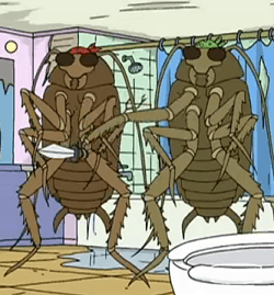 - In King of the Hill, after Dale is forced to quit his job as an exterminator (due to all the poisons he exposed himself to) and gets a desk job at an adhesives company, his son brings over some roaches which eventually let loose and swarm the place. Dale then kills them all off.
