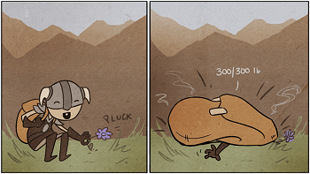 - Tales of Maj'Eyal falls to the trope. A single rune weighing 0.01 lb can be the difference between full unencumbered movement and being unable to move at all.