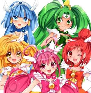 - All the girls except Doremi (who has red hair and literal pink eyes) and Hazuki (shown as having brown hair and orange eyes) in Ojamajo Doremi.