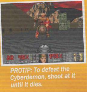 - In its first appearance, you can get the Cyberdemon caught up on the building architecture. Then shoot through a tiny gap in the building. Safely pecking it to death with the pistol becomes tedious though.