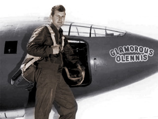 - His collected persona on the radio was demonstrated profoundly in an incident mentioned in his autobiography and (sort of) shown in the movie version of The Right Stuff. While testing the X-1A, the airplane broke into an abrupt spin at just over Mach 2 -- in an airplane that was impossible to escape from. When he finally manages to break out of the spin, he's just barely got enough altitude to make it back to base (the X-1 series was designed to use up all of its fuel on the way out and come back unpowered). Next thing you know, he's making a wisecrack to the carrier aircraft about not needing a structural integrity demonstration. Probably a Real Life Crowning Moment of Awesome for a man whose life was full of them.