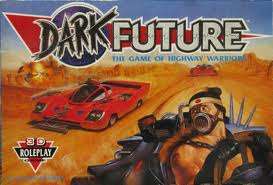 Dark Future was a tabletop miniature wargame produced by Games Workshop and originally published in 1988. Initially developed by writer Marc Gascoigne as a Cyberpunk Role-Playing Game, he combined his concept of the titular dark future with fellow GW employee Richard Halliwell's idea for a car-racing game, using mechanics which Gascoigne had originally developed for the Judge Dredd RPG in the supplement Slaughter Margin. The game came in a box set containing several cardboard sections of road, plastic vehicles and a rulebook. The car miniatures were roughly 25mm scale. Players took on the role of a Sanctioned Operative, a licensed bounty hunter whose job was to clear out highway sections of the vehicle gangs causing trouble or that of a Renegade; one of the gang members.