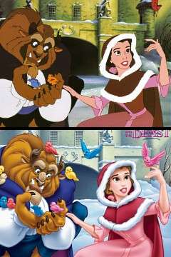 - Alice in Wonderland did this with the opening credits, showing art that showed a lot of detail not apparent in the film proper. One included the overskirt on the queen's dress being trimmed with ermine (which is reflected in merchandise and mascot costumes), when it looks like white piping in the movie.
