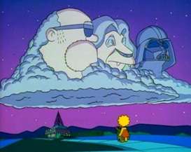 Oh no! The Love Interest, Mentors, parents, little sister, or another emotionally significant character to the hero has been killed by the villain. Woe! However, it's ok. Because the Big Bad has been beat, and their souls can rest peacefully in Fluffy Cloud Heaven. To demonstrate this, their ashes, ectoplasm, or even (and this one's popular) the clouds themselves form into their faces, and smile serenely down at our (still living) heroes before fading away to their eternal reward. Typically a Heartwarming Moments.