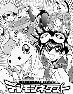 The second major Digimon manga to be produced in V-Jump, Digimon Next is a 26 chapter series that ran from 2006 to 2008. Its run coincided with the airing of Digimon Savers and both series shared concepts like DigiSouls, similar partner Digimon, and the same Digivices. However, Next adhered closer to the original youthful art style and themes of the first four anime series.