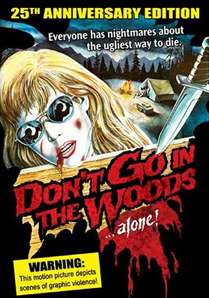 Don't Go in the Woods (which sometimes has ... Alone! tacked on to the end of it) is an infamously inept 1981 Slasher Film and Video Nasty, and the Trope Namer for Don't Go in The Woods.