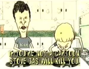 - Later episodes of Beavis and Butthead were prefaced with a voiceover pointing out that flesh and blood human beings aren't likely to survive some of the imbecilic stunts that the cartoon characters pull off. "Some of the things they do might cause a real person to get hurt, expelled, arrested -- possibly even deported."