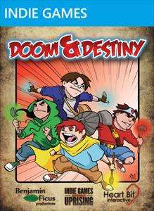 Doom and Destiny is an indie game developed by Heart Bit Interactive. This game tells the tale of four friends (Nigel, Johnny, Mike, and Francis) on their way to see Benjamin, their gamemaster, for a role-playing session at his house. When they realized that he's not here, they search around his house and come upon his cellar. When they find a book entitled "Doom and Destiny", they try to start the game to prepare for his arrival. When they find out that the next room they enter is a burning dungeon, they see that there is more to the role-playing game than meets the eye. Eventually, it leads the boys into another world, where they are proclaimed to be "legendary heroes" to stop a villain whose name cannot be said. If they ever hope to return home and find their gamemaster, they must defeat the evil villain of the story, along with performing other heroic duties. Hilarity Ensues as they encounter many different characters and Shout Outs.