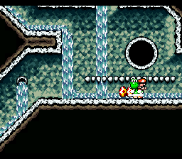 - "The Impossible Maze" from Yoshi's Island, which provides the page image, involved no swimming, but it had a current which would push you to other parts of the pipeline. Getting through it requires pushing crates into position to get to pipes that are normally out of reach, and falling down the wrong path or losing your crate means starting over.