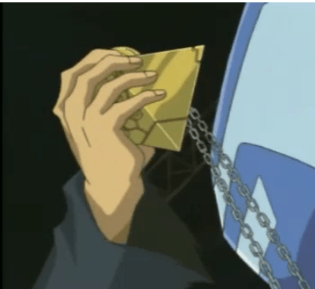 - Played with in an episode in the anime along with the Abridged Series: In the very episode where Yugi first puts the chain on, a bad guy steals it and puts it on a ring-ended metal spike which is stabbed into the wall. Because the puzzle is on a chain and not a string, Yugi can't pull it free. Doesn't work well when the building it is trapped in is on fire! Good thing for Yugi that Joey and Tristan were nearby.
