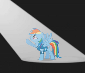 - The trope is parodied again in the "Hearth's Warming Eve" episode. Spike the baby dragon gets one when he starts Chewing the Scenery during his narration of a play, but since he's on a stage, it's justified in-universe.