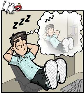 The main character dreams that a giant cantaloupe is out to get him, then wakes up with a start. After a moment of sitting up and panting, he realizes it was All Just a Dream, then gets up and goes to the bathroom for a glass of water—only to find the giant cantaloupe there waiting for him. He wakes up with a start again, because of course the first waking-up bit was part of the dream. Also available in 'Dream Within a Dream Within a Dream', 'Dream Within a Dream Within a Dream Within a Dream', and so on, although some discretion is preferred.
