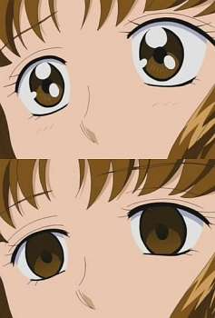 In anime, though, when a character is feeling sad, very tired, depressed, or is about to lose it completely, their eyes lose all the natural shine and have the appearance of being lifeless. Depending on the art style, this can range from merely a lack of highlights to the iris turning into a flat disc of the afflicted's base color. May or may not be accompanied by tired lines in the face. This trope is never a good sign.
