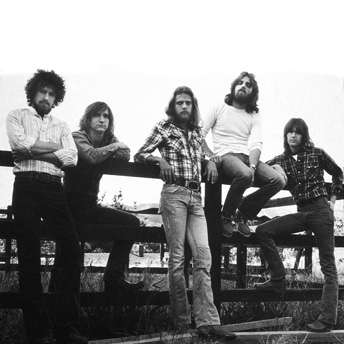 One of the definitive bands of the American 1970s, and the group behind many of classic rock's most iconic hits - "Hotel California", "Life in the Fast Lane", and "Heartache Tonight", to name a few. They started as a backup band for Linda Ronstadt. She noticed that they worked well together, then encouraged them to go on their own. They started out as a country rock group before moving on to more mainstream sounds; Eagles found their way to superstardom around 1974 and earned a page or two in the history of rock music before breaking up in 1980. Many of their songs revolve around or at least touch upon the ugly side of the American Dream that nobody talks about, which the band members felt they knew quite a lot about by the middle part of their career. Possibly worth noting is that their first Greatest Hits Album was the best selling album in United States history for over three decades, and its status only changed because Michael Jackson died.