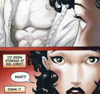 - Night Huntress has several scenes with Cat commenting on how attractive Bones is.
