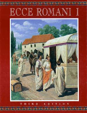Ecce Romani[2] is a series of Latin textbooks for high school students, teaching through stories, first published in 1971. The first two books follow the story of the Cornelius family, a family of Romans circa A.D. 80. The family includes Gaius, the father and a wealthy senator; Aurelia, his wife; Marcus and Cornelia, their children, and Sextus, who is not related, but whose widowed father is a good friend of Gaius, who in turn, is looking after Sextus while he stays in Asia. Other major characters are Davus, Cornelius's head slave and farm overseer, and Eucleides, the stereotypical ancient-Greek and slave-paedagogus of Marcus and Sextus. Oh, and Flavia, too.