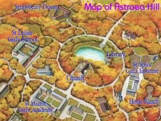- Strawberry Panic whose schools, as pictured above, boast helicopters, horse ranches, and their own church. The presence of the church not being ironic at all given the context...