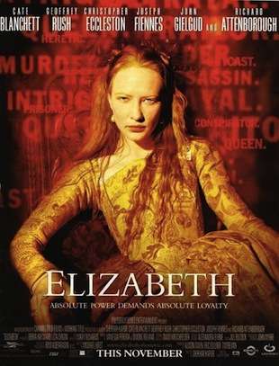 A 1998 Biopic of the early life of Queen Elizabeth I of England, arguably one of the greatest monarchs to ever sit on that throne, and starring Cate Blanchett in the title role. Broke the usual "period piece" mould of English biographical pictures in that it was directed by an Indian, Shekhar Kapur, took a much more dramatic style of storytelling, and didn't shy away from some historical truths of the era, such as dirt, poverty, and torture.