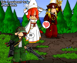 Epic Battle Fantasy is a trilogy, soon to be tetralogy, of flash games developed by Matt Roszak. You play as a Magic Knight-type character in Pirate gear who uses "Bushido" (and a rather impressive collection of specialized swords and other weapons) along with his team mate (Word of God denies any further relationship), a Fan Service-y mage named Natalie (or Natz for short). The plot for the original game is literally non-existent; you just fight wave after wave of enemies with the occasional stop at a shop to buy items. The second game continues the fight-only tradition (with an actual plot this time), but now there are save points and a minigame you can play to earn more money for the shops. After defeating the final boss, a neo-Nazi named Lance who tried to take over the world, he sides with the heroes and joins the party for the third game.