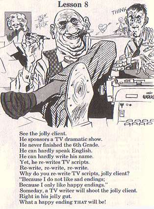 One way in which these traits manifest themselves is for the executive to force changes on a show which he feels is too different or edgy, in order to make it "less risky" or "more appealing to the audience"—in other words, garner higher ratings. "More appealing" often translates into "more action-oriented" or "sexier" or, in the immortal words of Woody Harrelson as Steve Martin's producer in L.A. Story, "more wacky, less egghead." Often the executive wants to reach the Lowest Common Denominator for better or worse. And far too often this can edge over into denigrating viewers' intellect or that their memory is comparable to a small fish species. And of course if you stick too closely to what "works" it can be hard to stand out. Which can be the surest death sentence of all.
