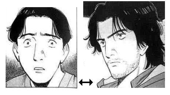- In Monster, the protagonist Kenzo Tenma goes from an immaculately groomed Woobie to a scruffy, stubbled, long-haired Badass. Pictured above.