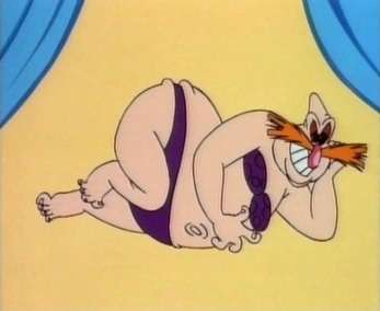 Fan Disservice can still wind up being Fan Service, if you're into that sort of thing. Rule 36, people. Also, there are many examples linked elsewhere on the wiki which are listed as disservice solely because they involve naked men. Male nudity by itself is not Fan Disservice; there are demographics that male nudity tends to be Fan Service for. Some drag queens are often subject to this trope.