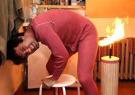 - In the comedy Caveman, one of the rival cavemen gets his butt lit on fire, he runs around farting and emitting jets of flame.