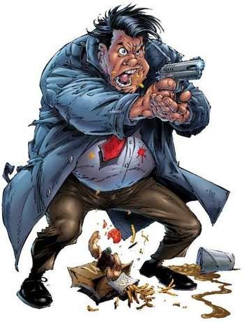 - Sam Burke of Spawn (current Trope Illustrator): very rotund and notoriously sloppy with his eating.