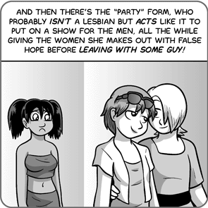 - This Shortpacked strip, with Amber shanghaied into attempting to throw off an unwanted admirer with faux-lesbianism.