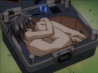 - Chobits: In the picture showing Chii (or rather, Chobit 01) during construction and linked with a myriad of cables, she is unsurprisingly in a fetal position.