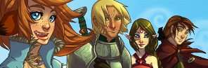 Kit was a fox until a senile witch turned her not-quite human. Nigel's been cursed to follow someone who is "a girl but not a girl, and neither human, dwarf, nor elf." Thankfully there were no "transvestite hermaphrodite gnomes" around, so instead he's left following a Cute Fox Girl. Larina left a remote elven sanctuary only to have a Possession Stone lodged in her forehead. Now random ghosts can take over her body. It's "kind of a pain, you know?"