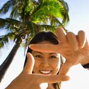 Using the index finger and thumb of both of your hands to make a rectangle and looking through it. Most likely used by photographers or movie producers.