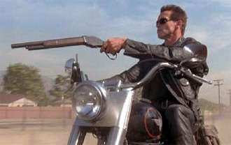 - In the first Terminator movie the T-800 uses both a shotgun and an assault rifle one handed.