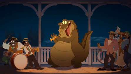- The picture above shows the trumpet playing alligator Louis from The Princess and the Frog, flashing back to when he first tried to play that trumpet for humans. The response that he got wasn't quite the applause he was expecting.