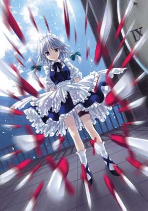 - Sakuya Izayoi from Touhou uses this in combination with her stopping time, in a Shout-Out to Dio Brando.