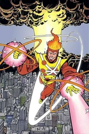 - Captain Atom: The titular captain is living atomic energy contained inside a nigh-indestructible metal suit. In addition to being a Flying Brick, he can fire the energy or, if his suit is ruptured, it will erupt from his body on its own, possibly causing a nuclear explosion.