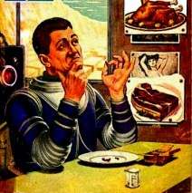- David Zondy's Tales of Future Past has a huge segment on Future Food, and of course Food Pills. The best page is probably the one describing an attempt to put it into practice;