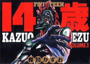 Fourteen is a scif-fi horror manga series by Kazuo Umezu. The manga takes place in a dystopic future, where a lump of chicken flesh from a chicken meat-growing factory transforms into a supermutant chicken man named "Chicken George". He goes on a mission to take revenge on humanity for ruining the planet.
