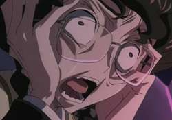 - Eureka Seven: While brutally mutilating an enemy LFO in Episode 20, Renton hallucinates a blob that reflects his own face. If this subsequent scream doesn't count as losing one's sanity, nothing will.