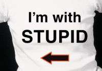 - In an early issue of Marvel Comics' Thunderbolts, the team was trying to infiltrate an evil organization's base by pretending to be new civilian recruits. Moonstone used her Unlimited Wardrobe power to make an "I'm with Stupid" T-shirt whose arrow kept pointing to different people.