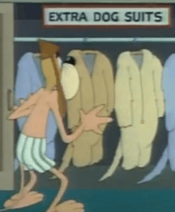 - Ren and Stimpy have revealed their fur to be nothing but a suit in a few different episodes, by unzipping to take a bath or go skinny dipping.